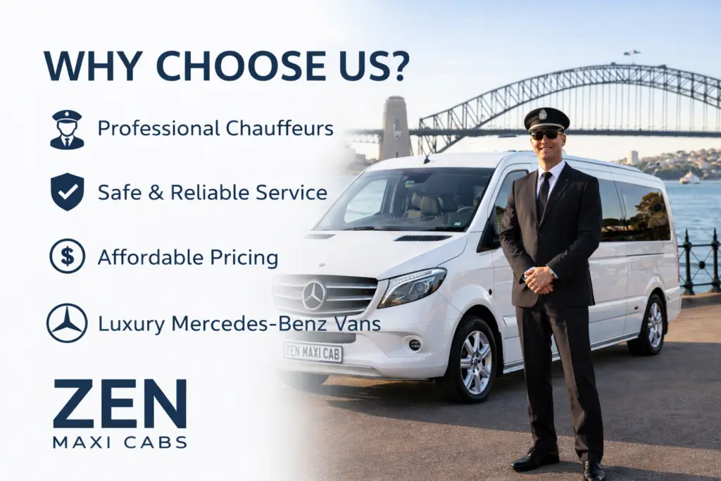 Zen Maxi Cabs is a Sydney-based maxi cab and taxi service, providing affordable, reliable, and safe transportation across Sydney. We proudly serve families, groups, tourists, and business travellers, delivering professional service with experienced local drivers.